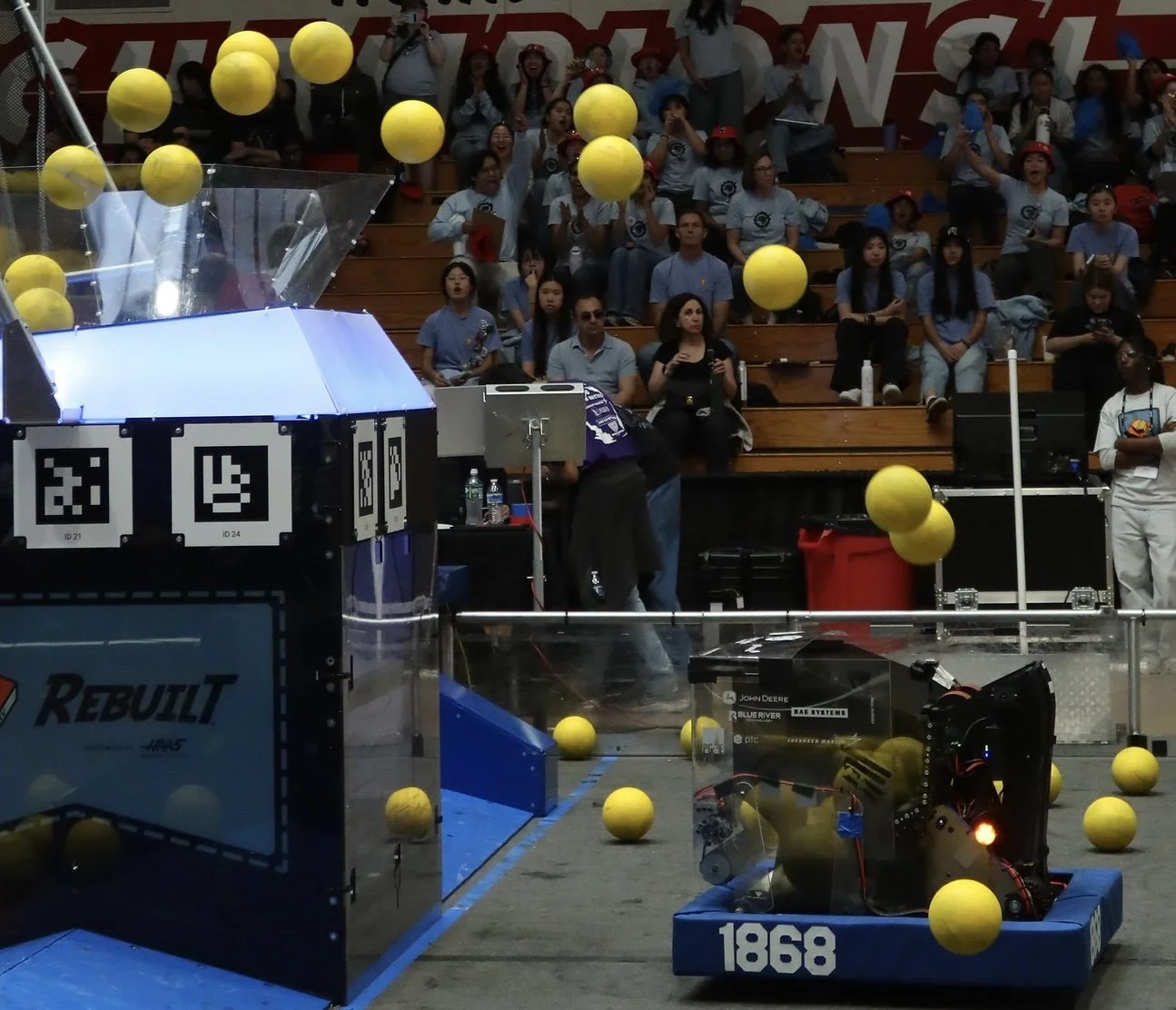We've been designing, building, and programming robots for every FRC game since 2006. Click on each photo for robot highlights.